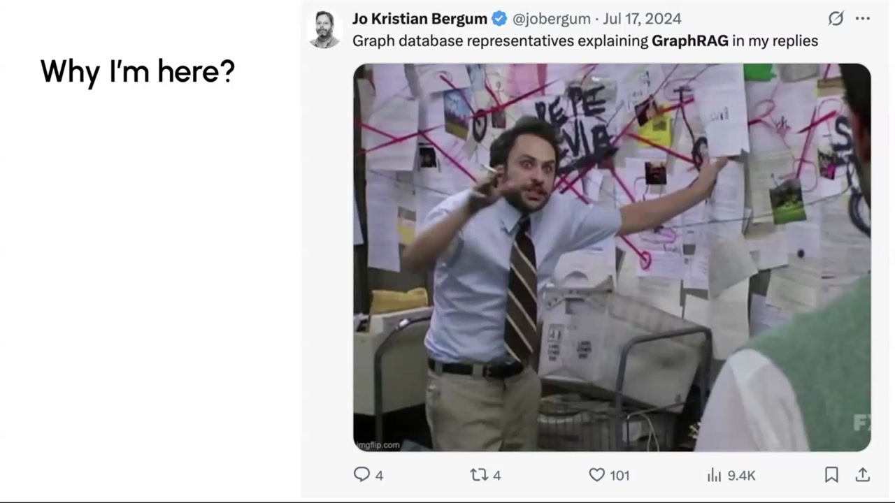Jo argues this is flawed thinking. There is no single tool that will solve all your problems. The desire to map a new technique (GraphRAG) to a technology (a graph DB) is a trap many engineers fall into.